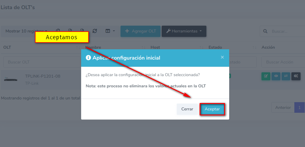 1 Ir a Lista de OLT