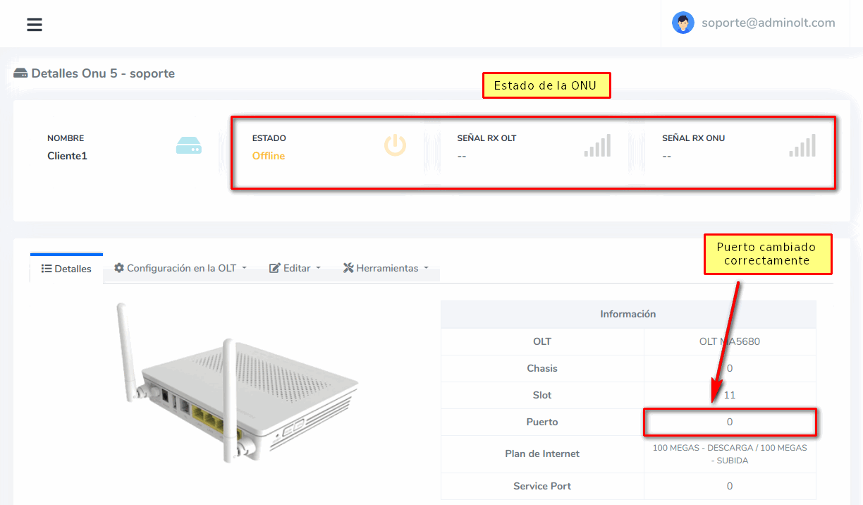 7 Cambiar ONU de Puerto fisicamente y verificar estado de la ONU