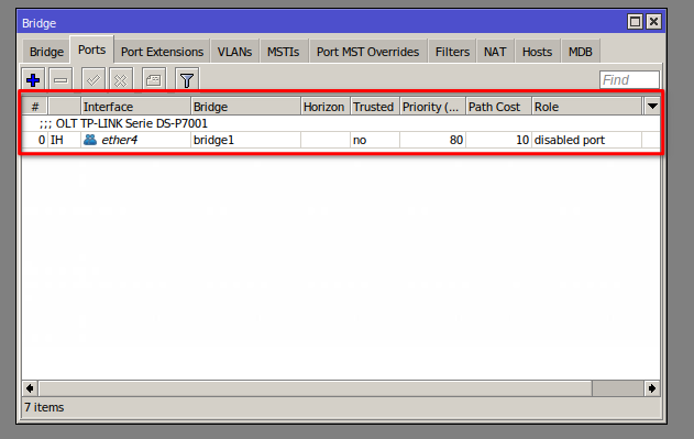 2 Asignamos al bridge1 los dos puertos que conectan a la OLT.