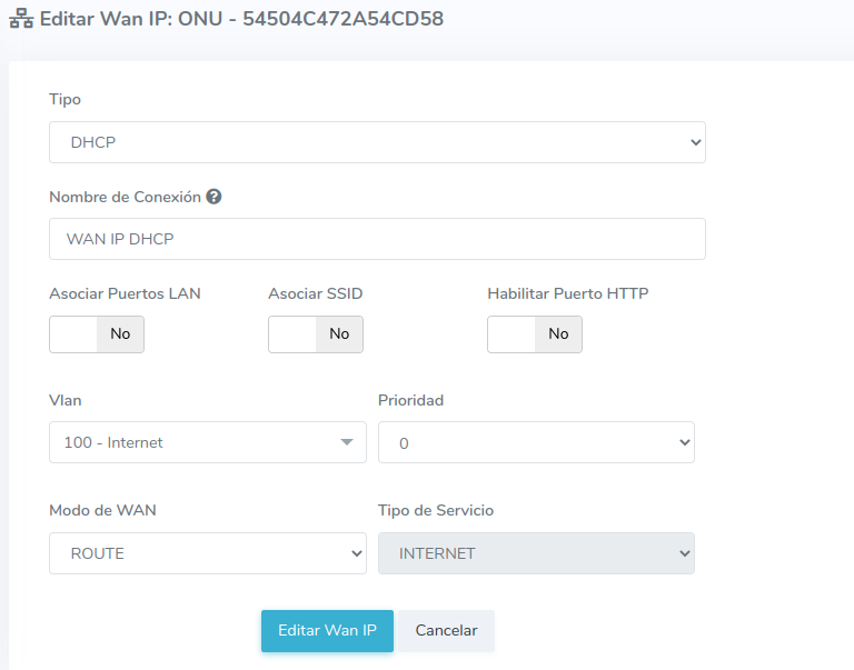 Pasos para crear Wan IP desde Onu's autorizadas.
