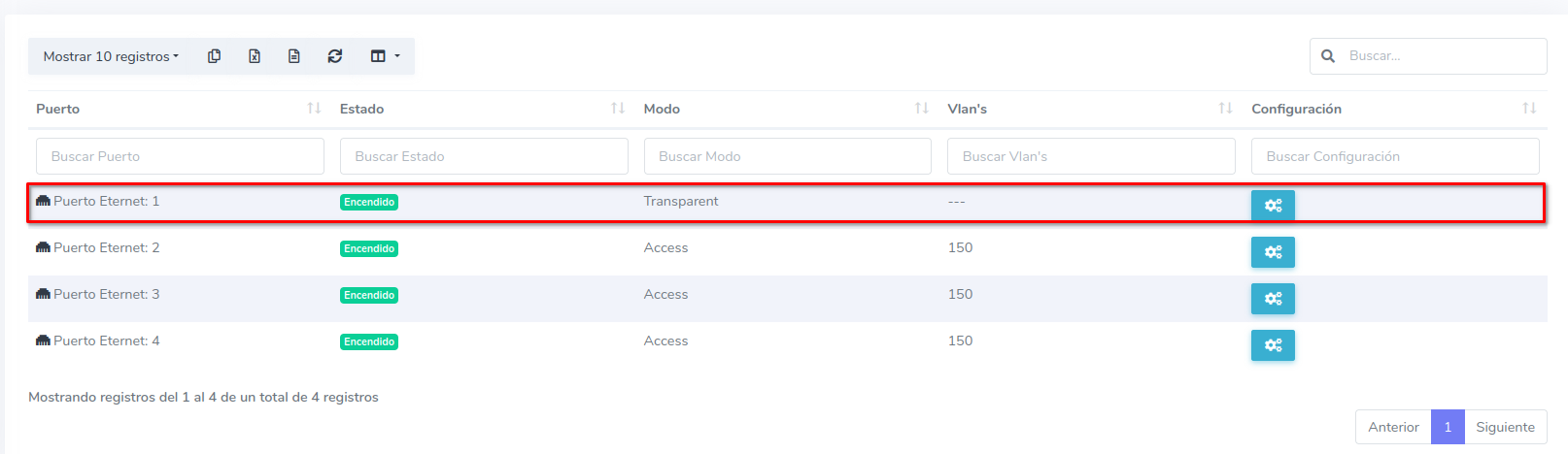 1 En Configuracion de puertos ETH dirijase al boton de configuración del puerto ETH que desee configurar