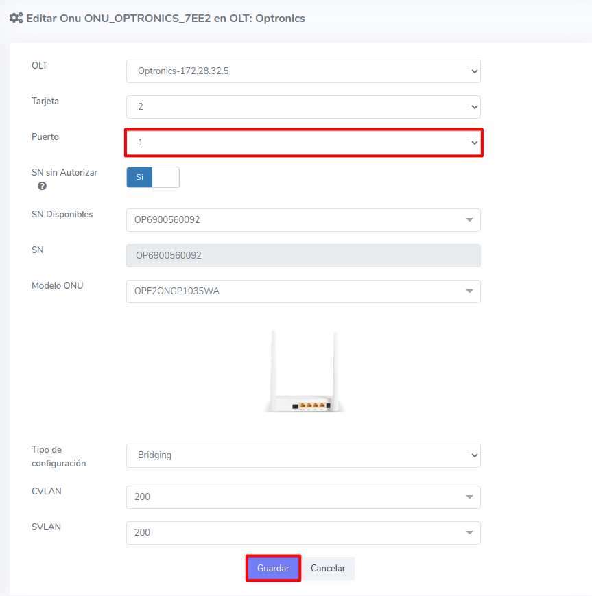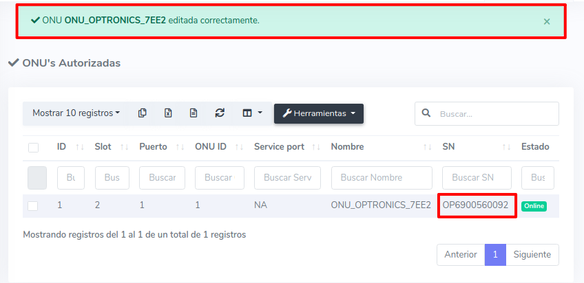 Editar ONU Optronics por Numero de Serie (SN)