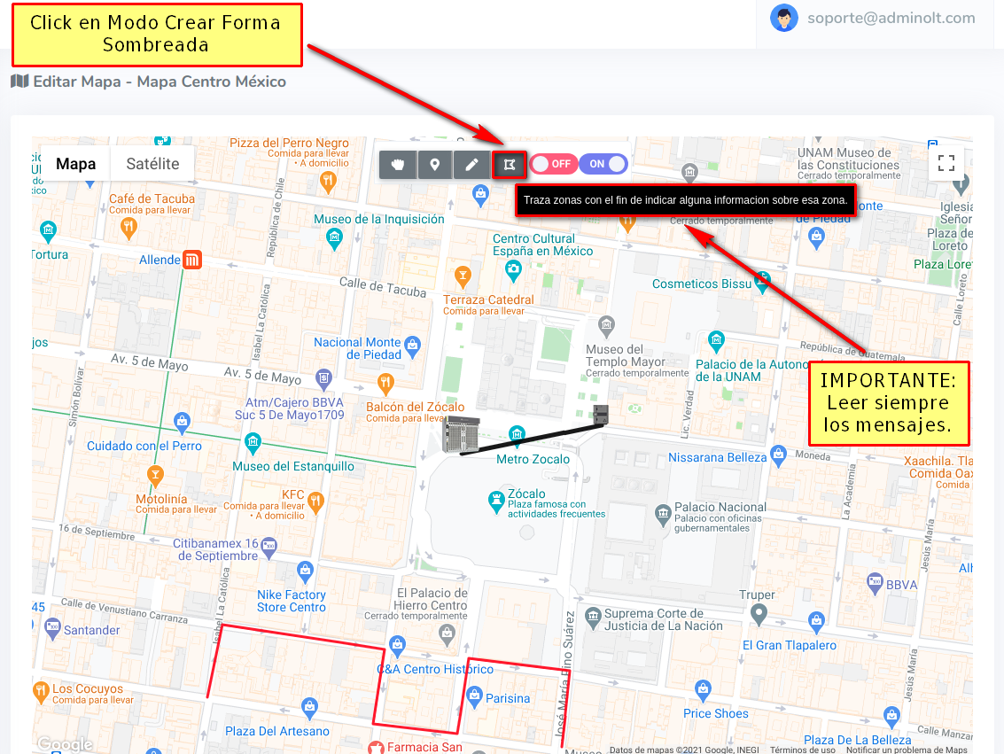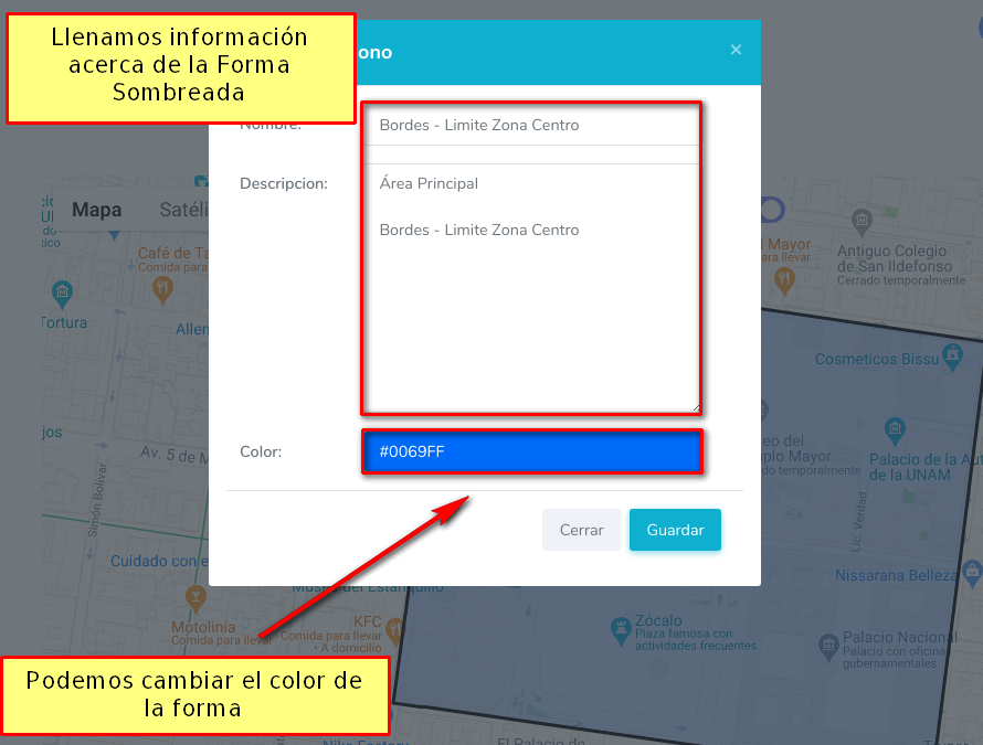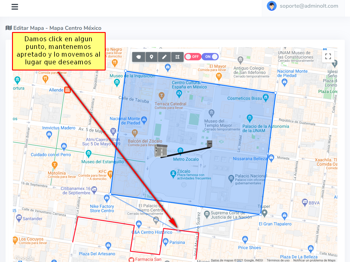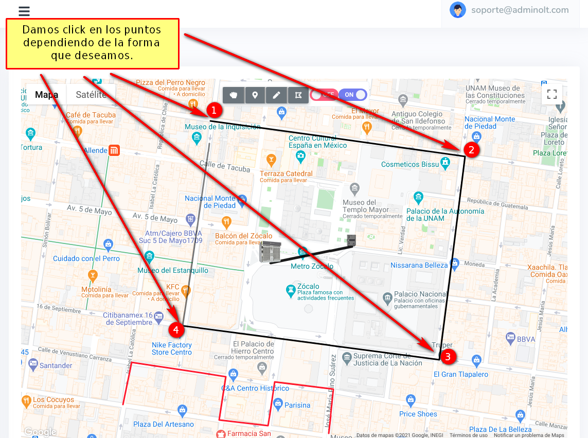 Para dibujar nuestra Geozona damos click en los puntos que deseamos.