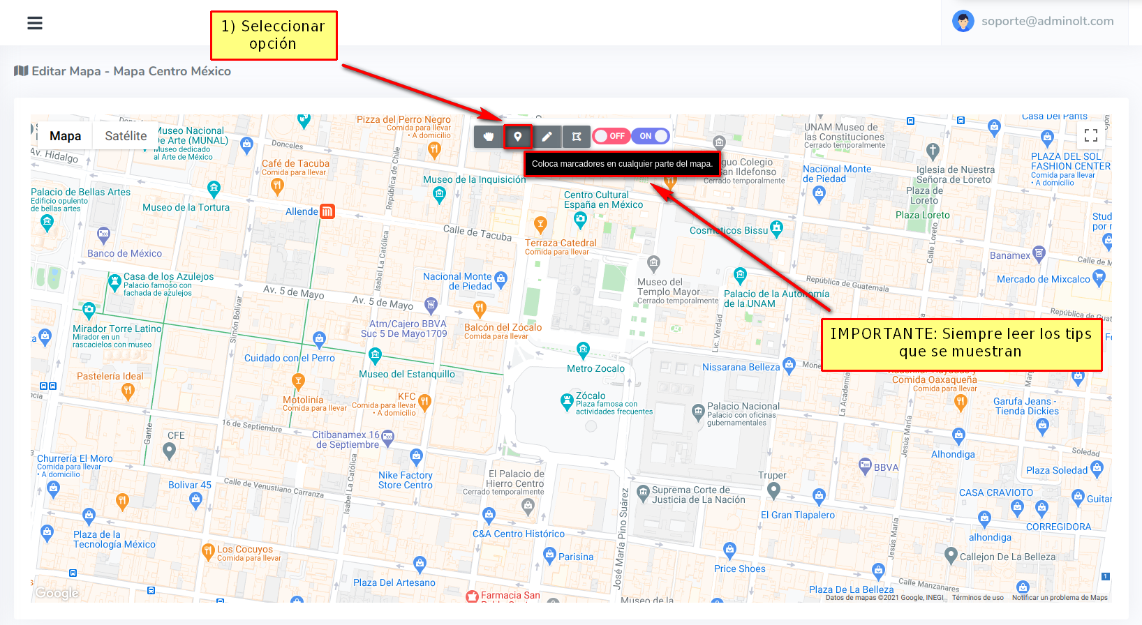 Si queremos cambiar algo de un marcador creado lo podemos hacer, para esto debemos abrir el mapa en el que se encuentra el marcador y seguir los siguientes pasos.