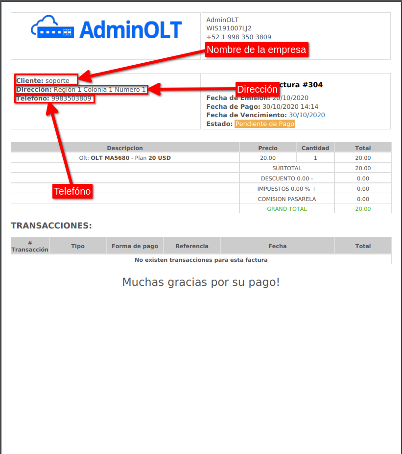 En el siguiente ejemplo se puede visualizar que información estará en las facturas.